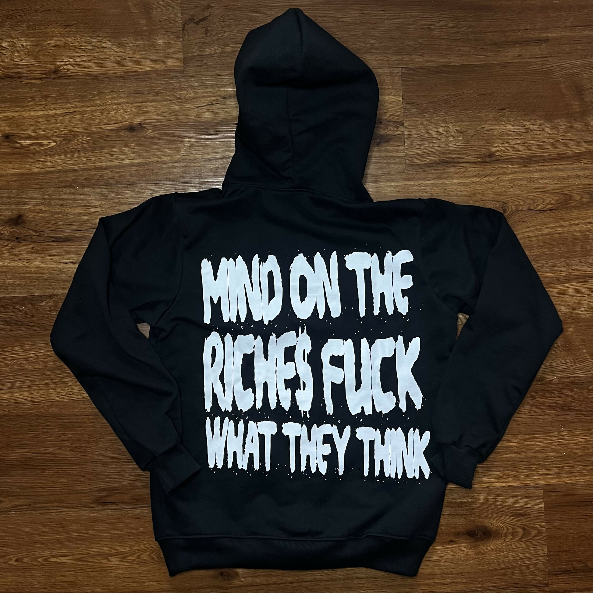 The 3 Wise Angels sweatsuit set features a hoodie and flared sweatpants, perfect for a cozy day in or a casual outing. Inspired by the principle of see no evil, hear no evil, speak no evil, this sweatsuit will make you feel angelic and stylish at the same time.