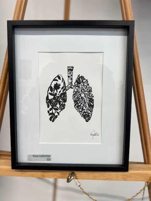 The Rose Collection is a series of works inspired by anatomically correct images of nature, human anatomy drawn in the style of roses and thorns. The collection is a representation of the beauty and pain we all experience, roses for beauty/good, thorns for pain/suffering, to be alive is to experience both.