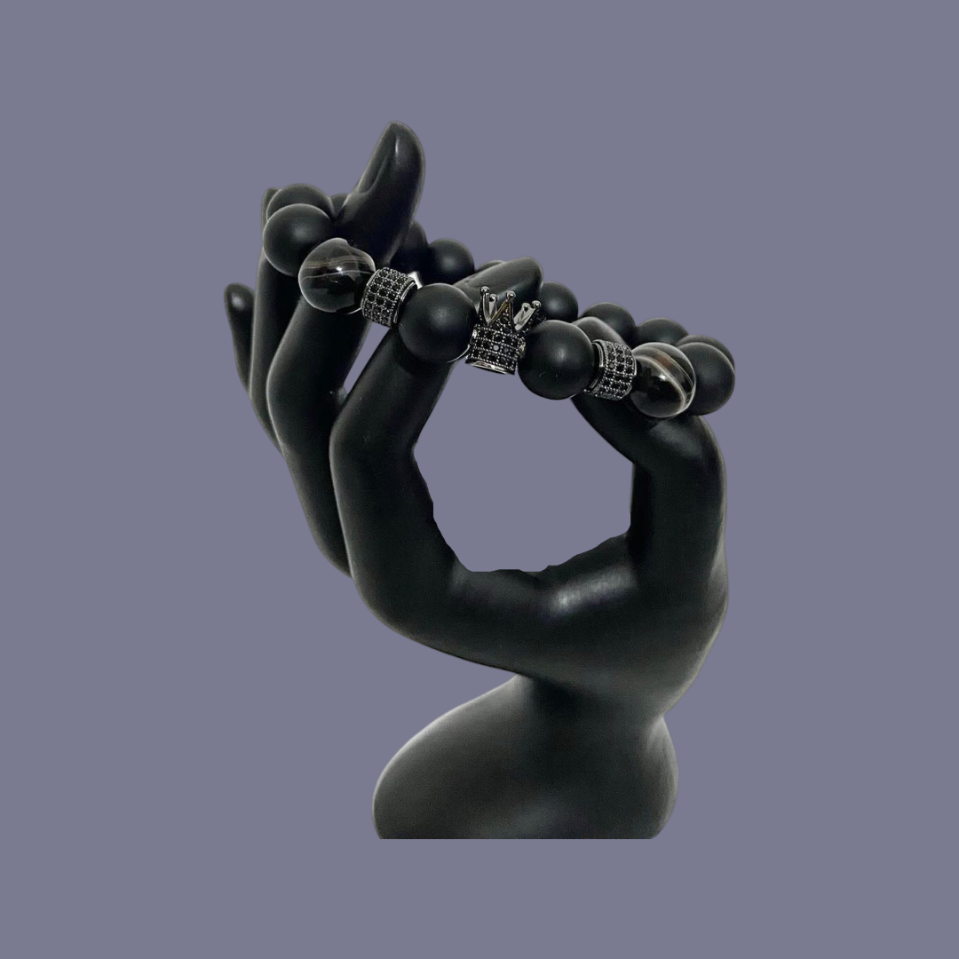 9-Inch African Handmade Black Onyx Wrist Beads