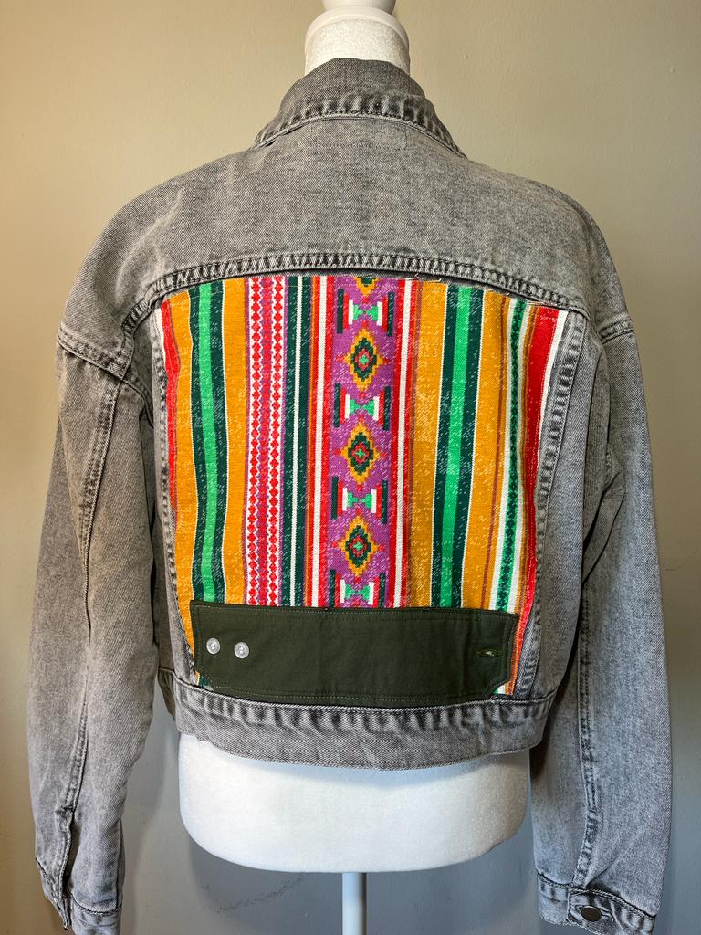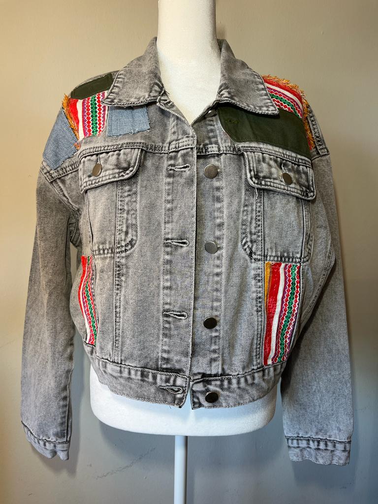 Exclusive Argentinian Native design. Made with unique and limited edition design. Embellished jacket with different fabrics and denim scraps.