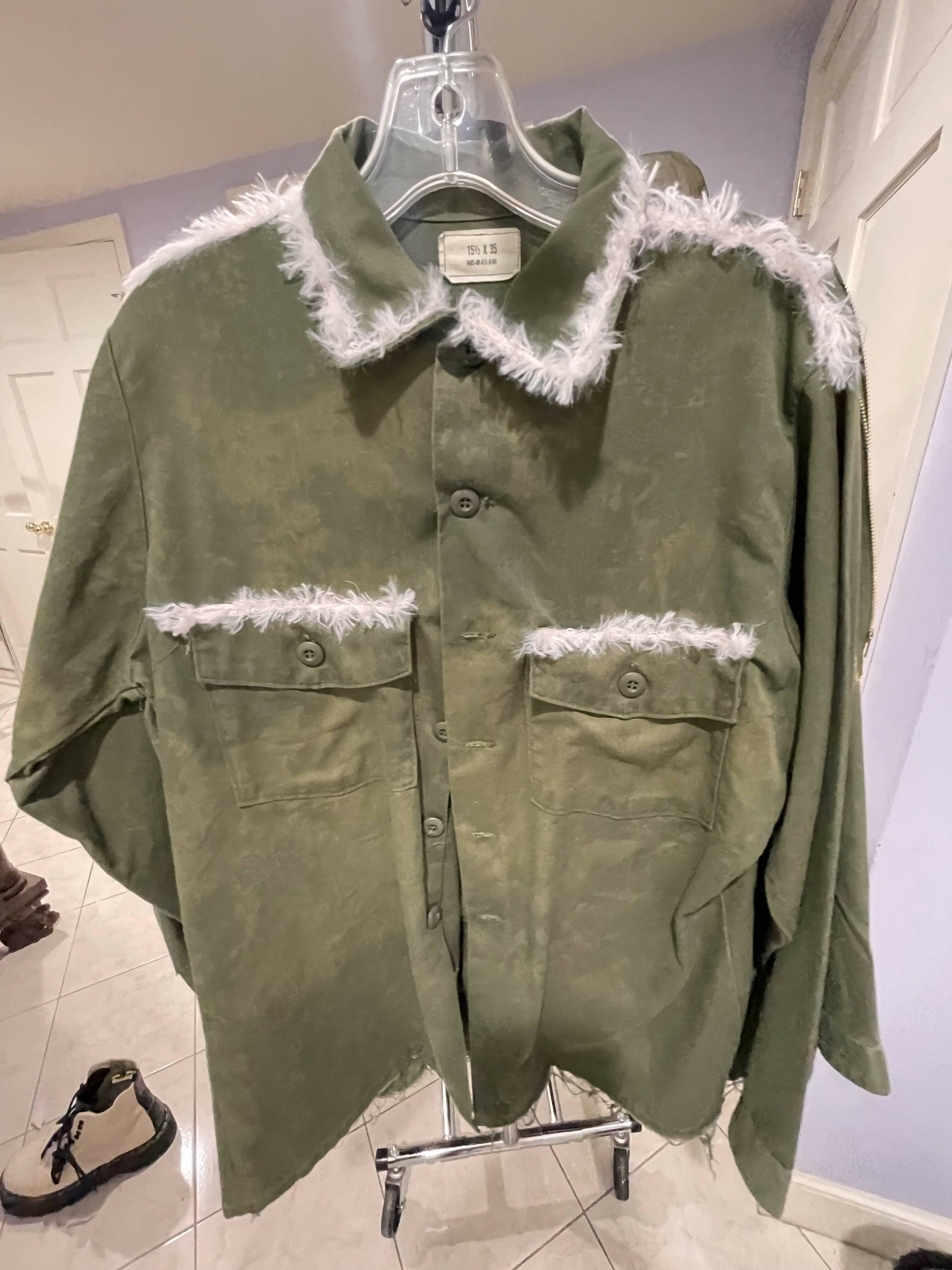 Authentic Military Jacket Embellished with pink fur trim and Pink Floyd on back