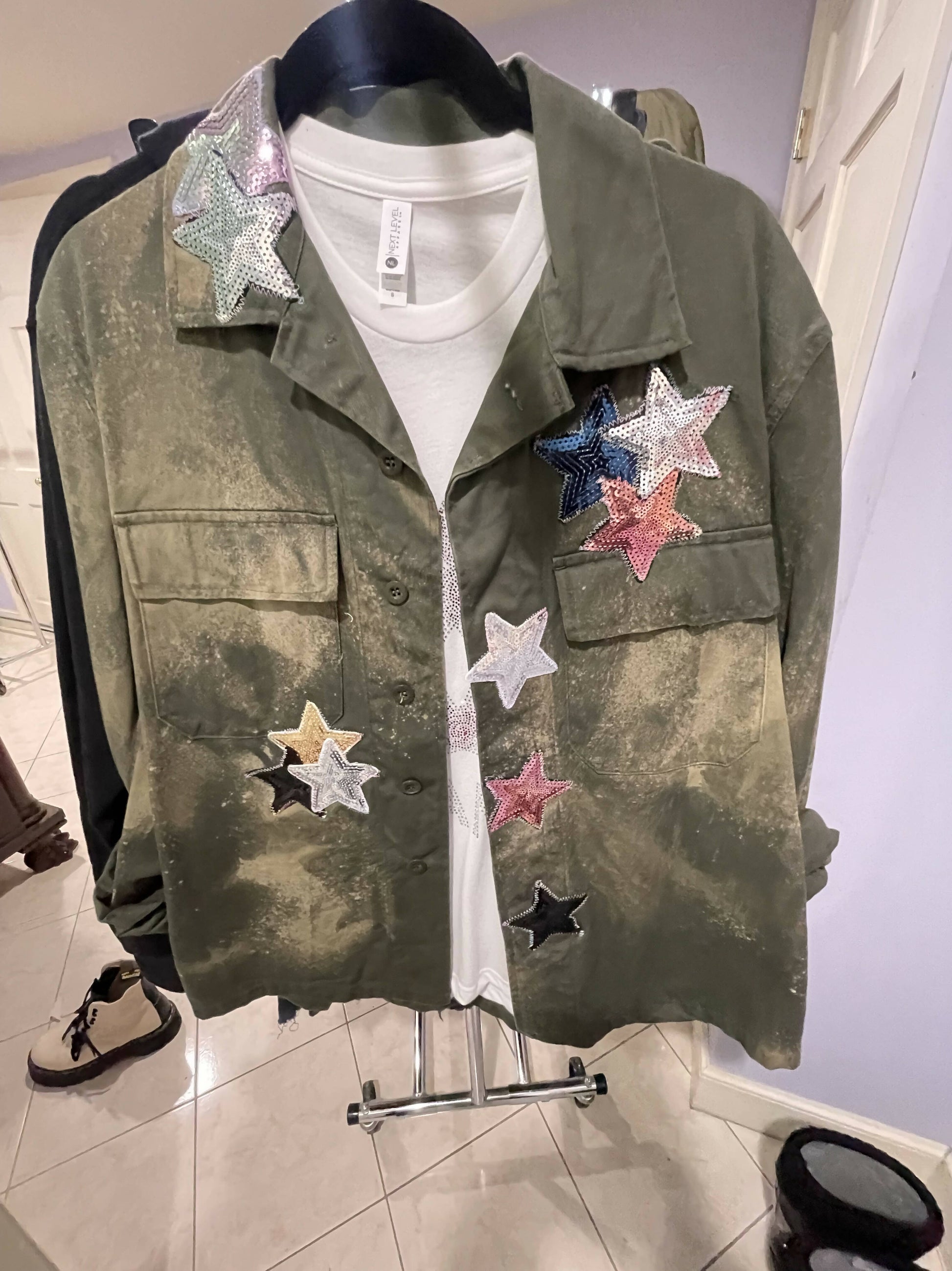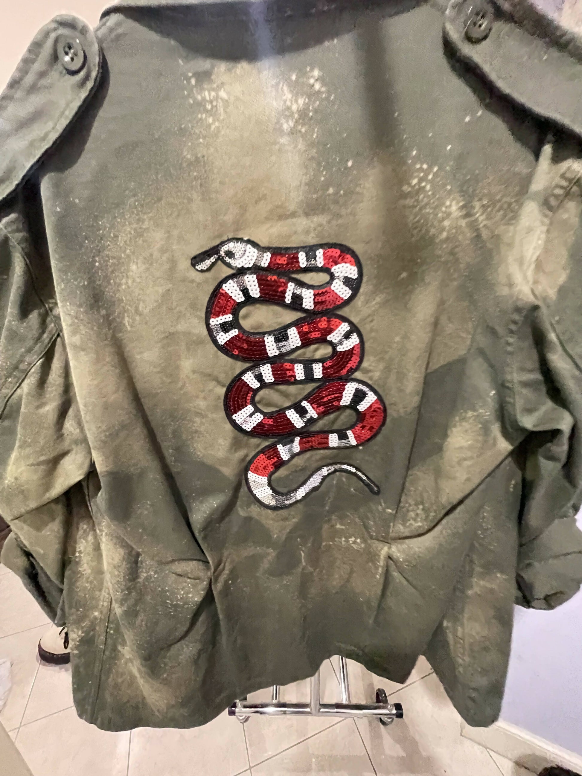 Authentic Military Jacket Embellished - Sequined stars on front, Snake on back