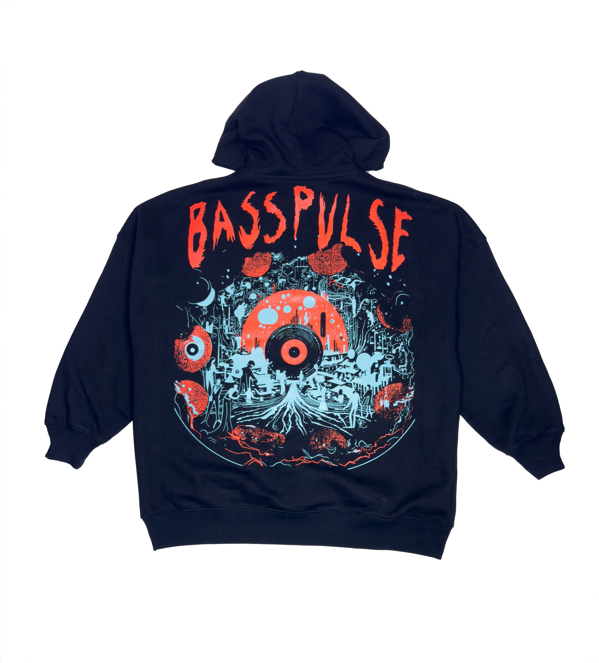 DESIGN: Feel the rhythm with the BASS PULSE Hoodie, distinctive puff printed "BASS PULSE" text on the back that echoes the energy of the dance floor. Screen printed 4TC logo and a puff printed waveform on the front, with the bottom waves elegantly delving inside the hoodie pocket. Vinyl-shaped abstract artwork on the back encapsulates the essence of the electronic scene, with multiple house and techno-inspired elements, creating a visual symphony that mirrors the music you love. Dense 340 GSM, 100% COTTON Blend ensures a cozy yet oversized fit.