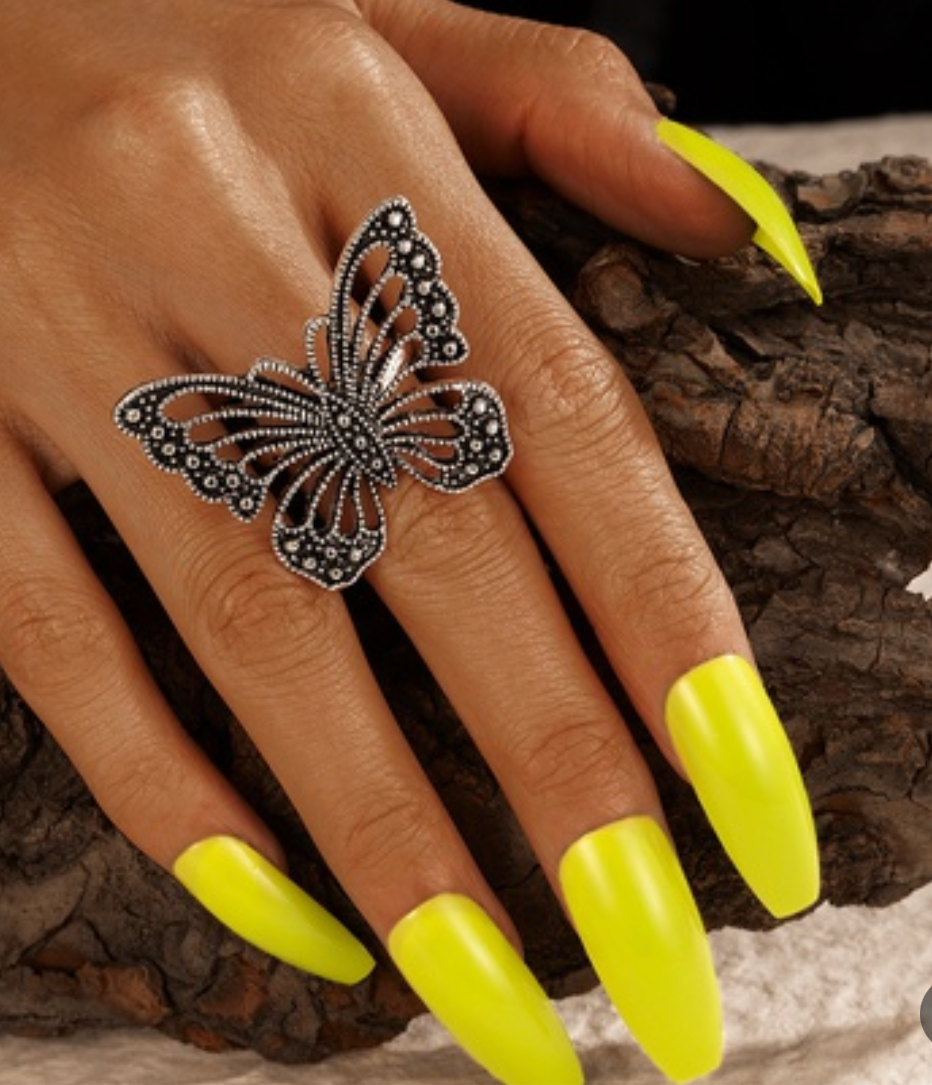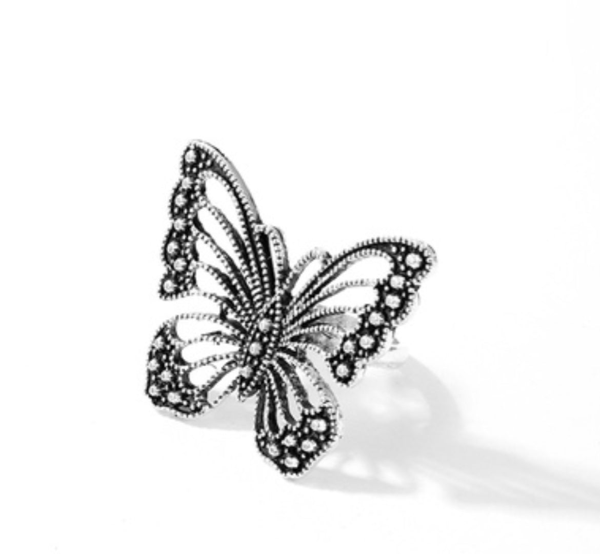 Hollowed out silver antique Butterfly ring