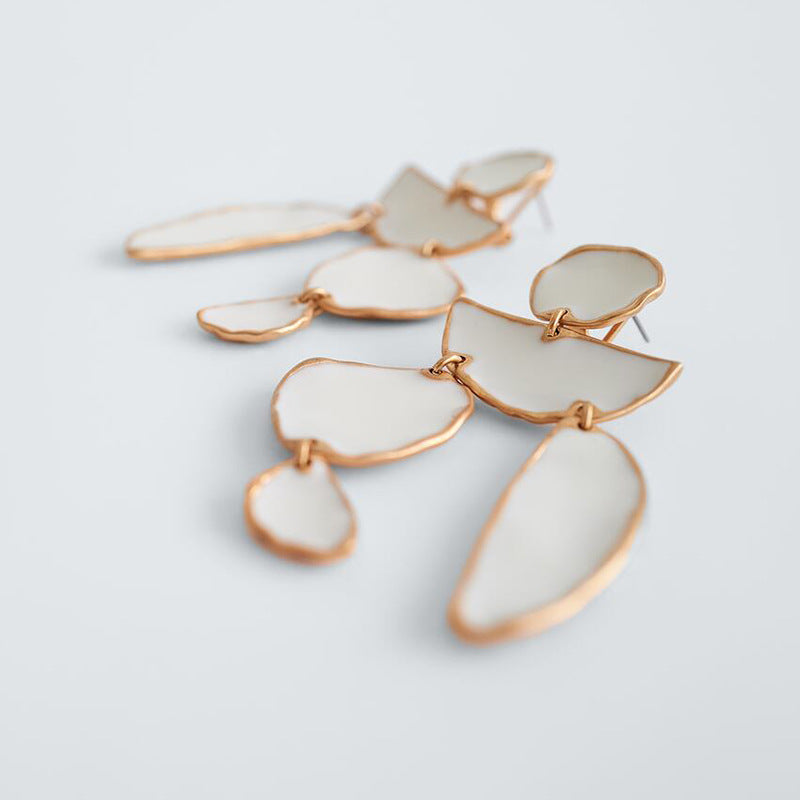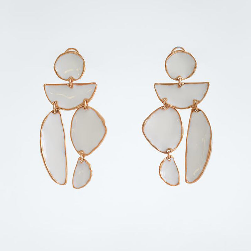 Meant to be seen. We’ve turned abstract white into the ultimate earring shape- something for everyone. Abstract drip earring.