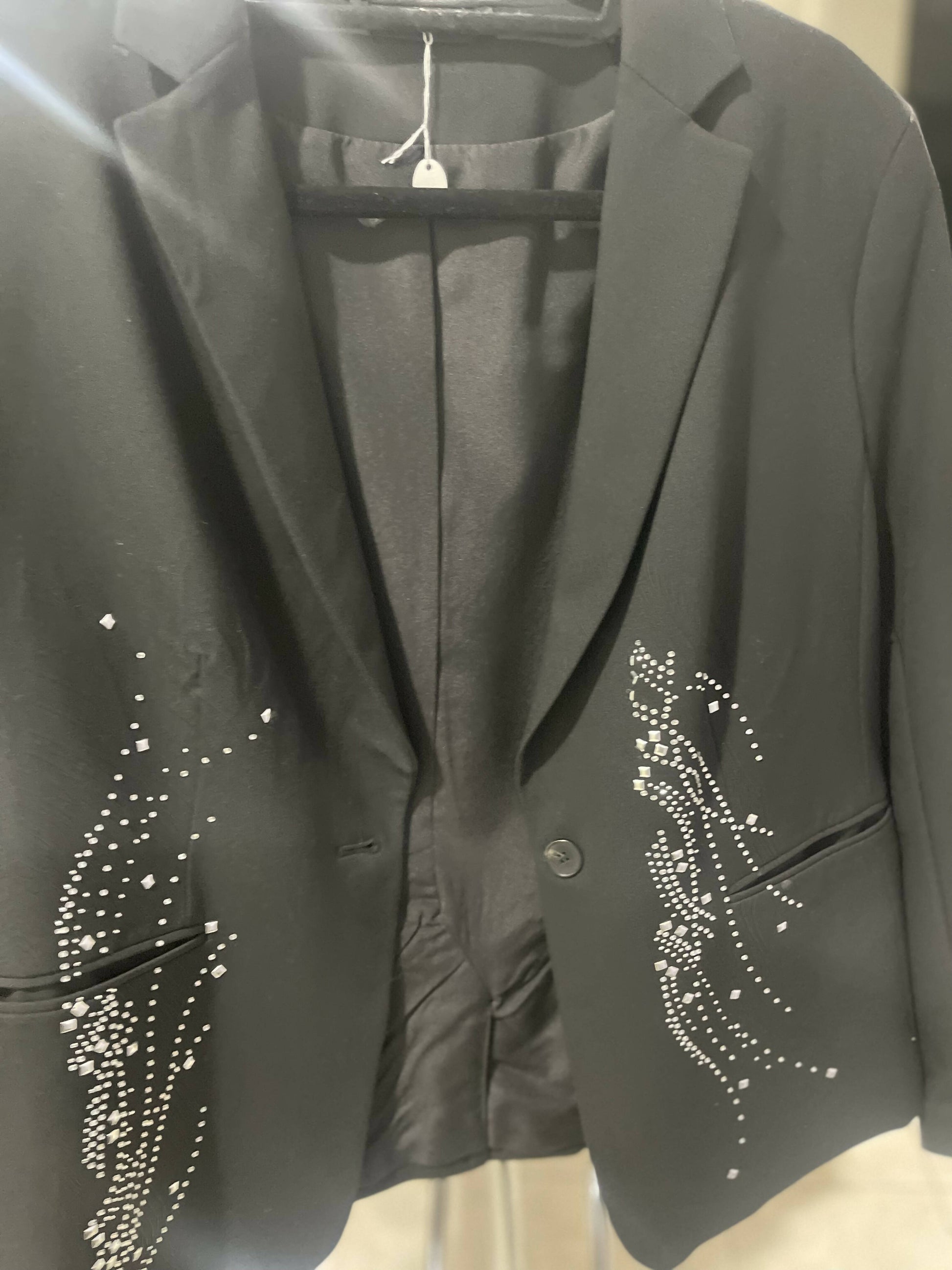 Blazer Black - with silver abstract skull on back, silver studs on front