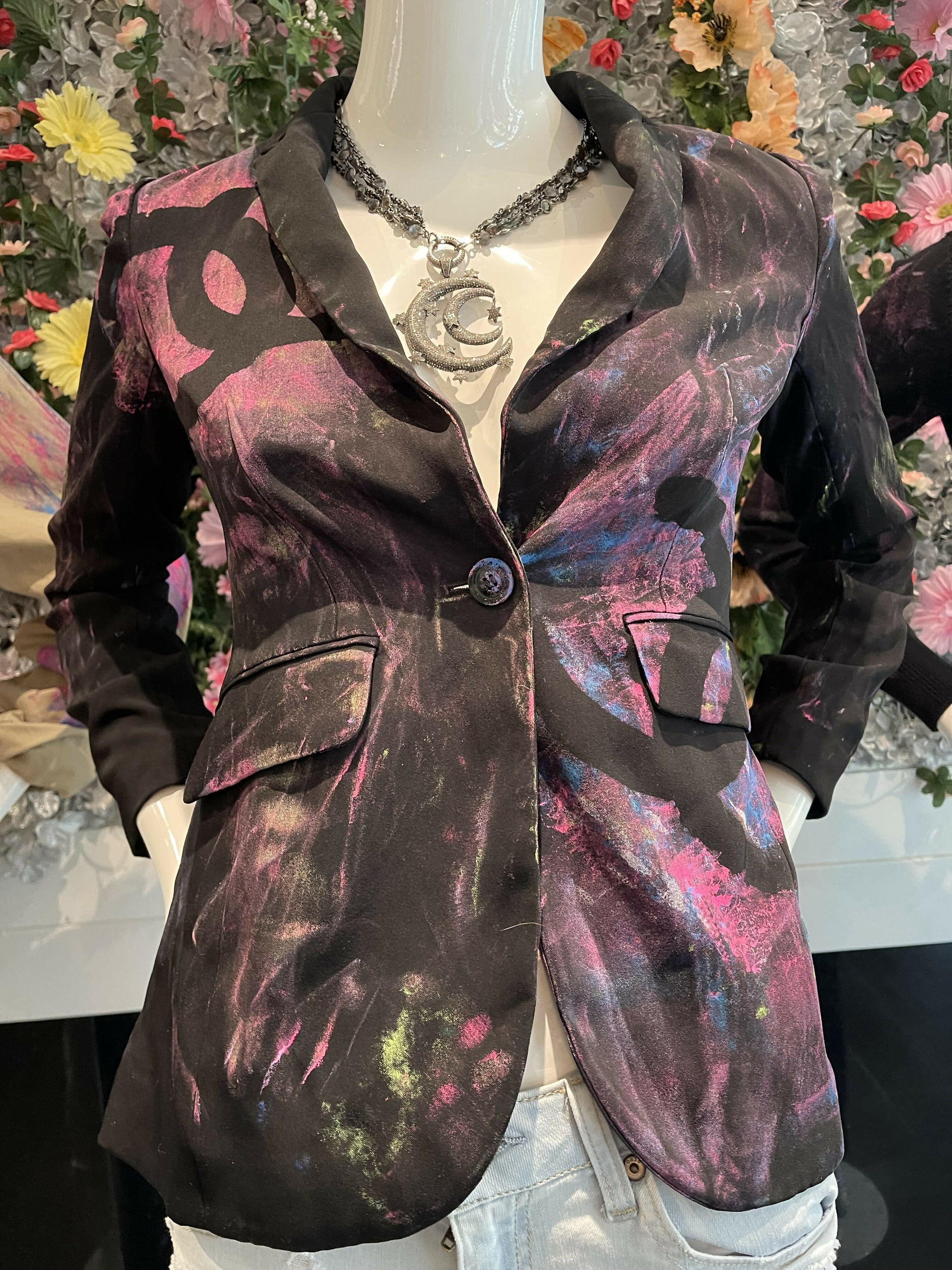 Blazer with logos on front and back