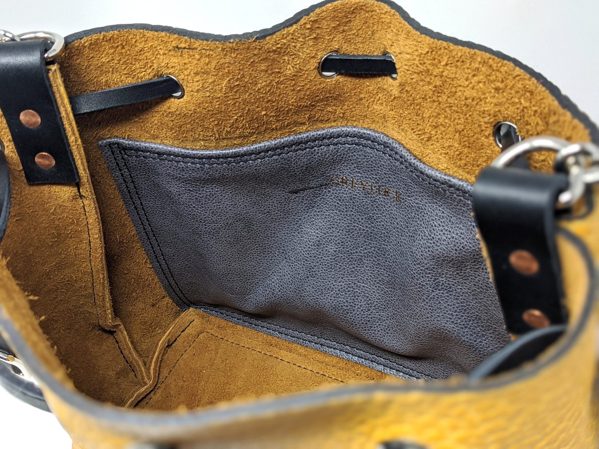 Leather info: Yellow Heavy Bison is an ultra premium leather that will take a beating for decades and only look better in the process. This thick, 7.5-8.5oz leather is spongey and soft with a luxurious shrunken grain and hand painted contrast tipping. It's an extremely rare and premium material that is inherently limited availability due to the labor intensive process and expensive materials required to produce it.