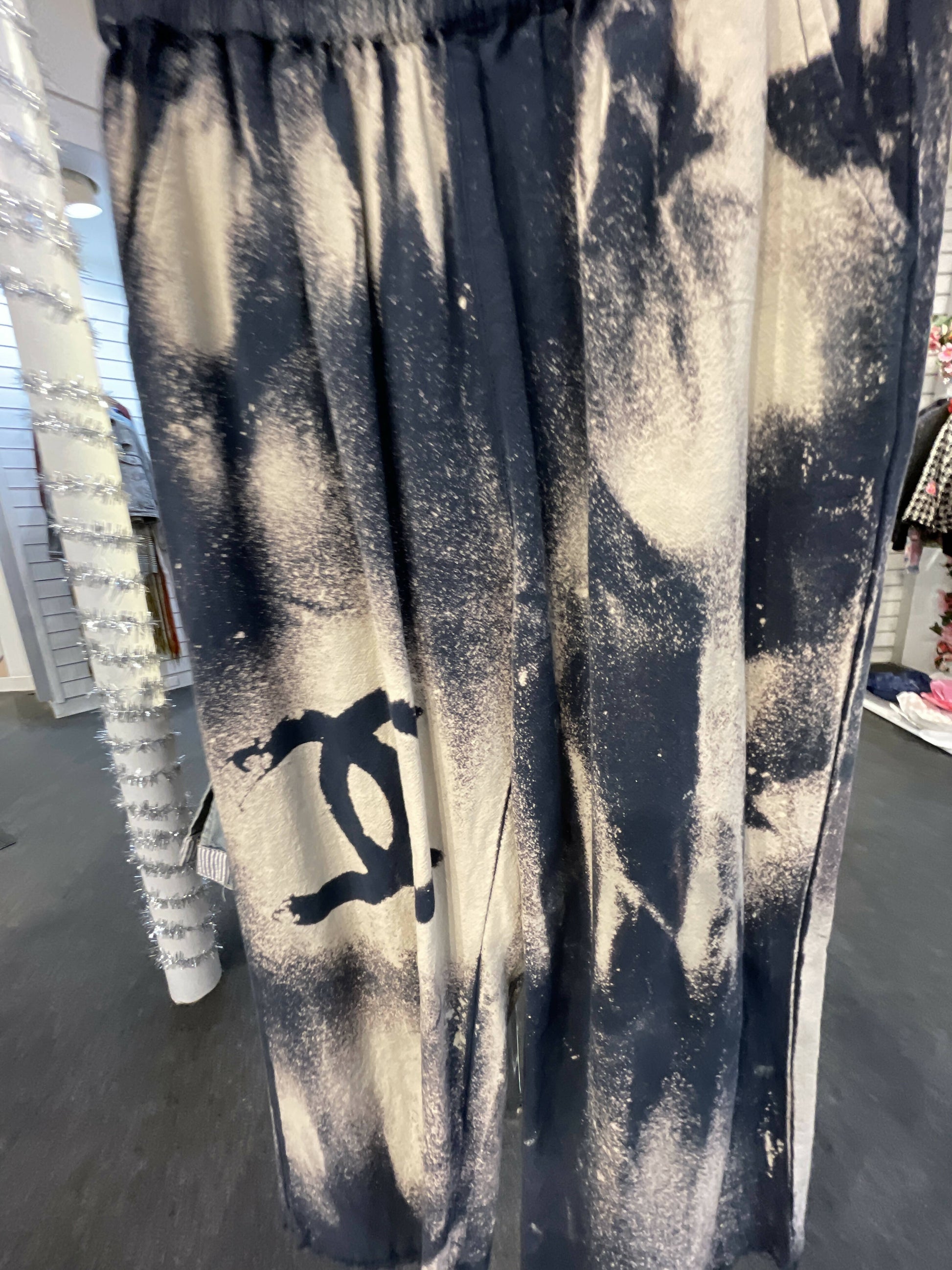 S/m color removal designer logo wide leg pant. Frayed bottom mid rise wide leg