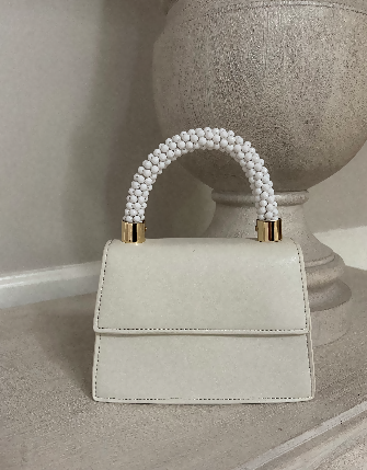 The cutest mini bag you ever did see! With a beaded statement handle and flap front closure, this bag has just enough room for just the essentials. Can be carried top handle or crossbody.