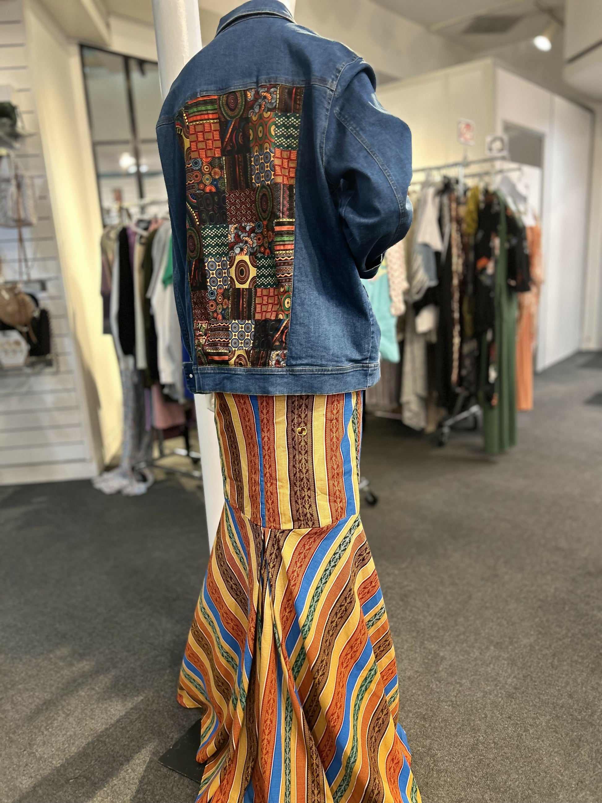 Denim Long-Sleeve Afro Jacket, a statement piece from LIZA DRIP CITY CLOTHING’s Afro Denim Collection. This design merges the timeless edge of denim with Afro-inspired artistry, featuring a bold patchwork panel that celebrates heritage and individuality. The long-sleeve silhouette offers both structure and comfort, while the vibrant back detailing transforms everyday streetwear into cultural expression. Pair it with boots or heels for a look that’s confident, creative, and unapologetically bold.