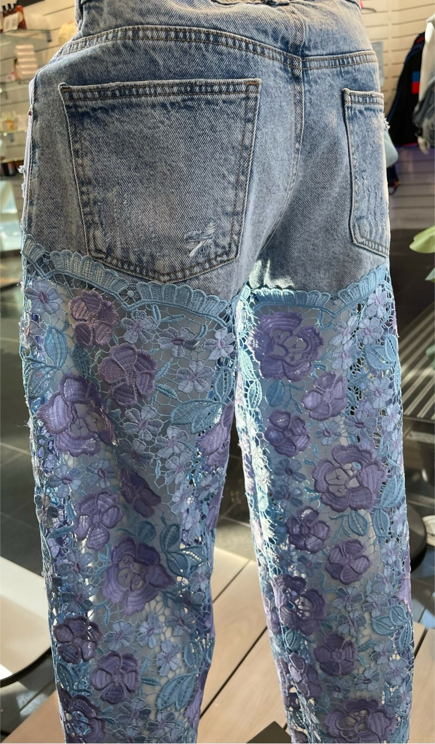 Denim Jean and lace leg treatment