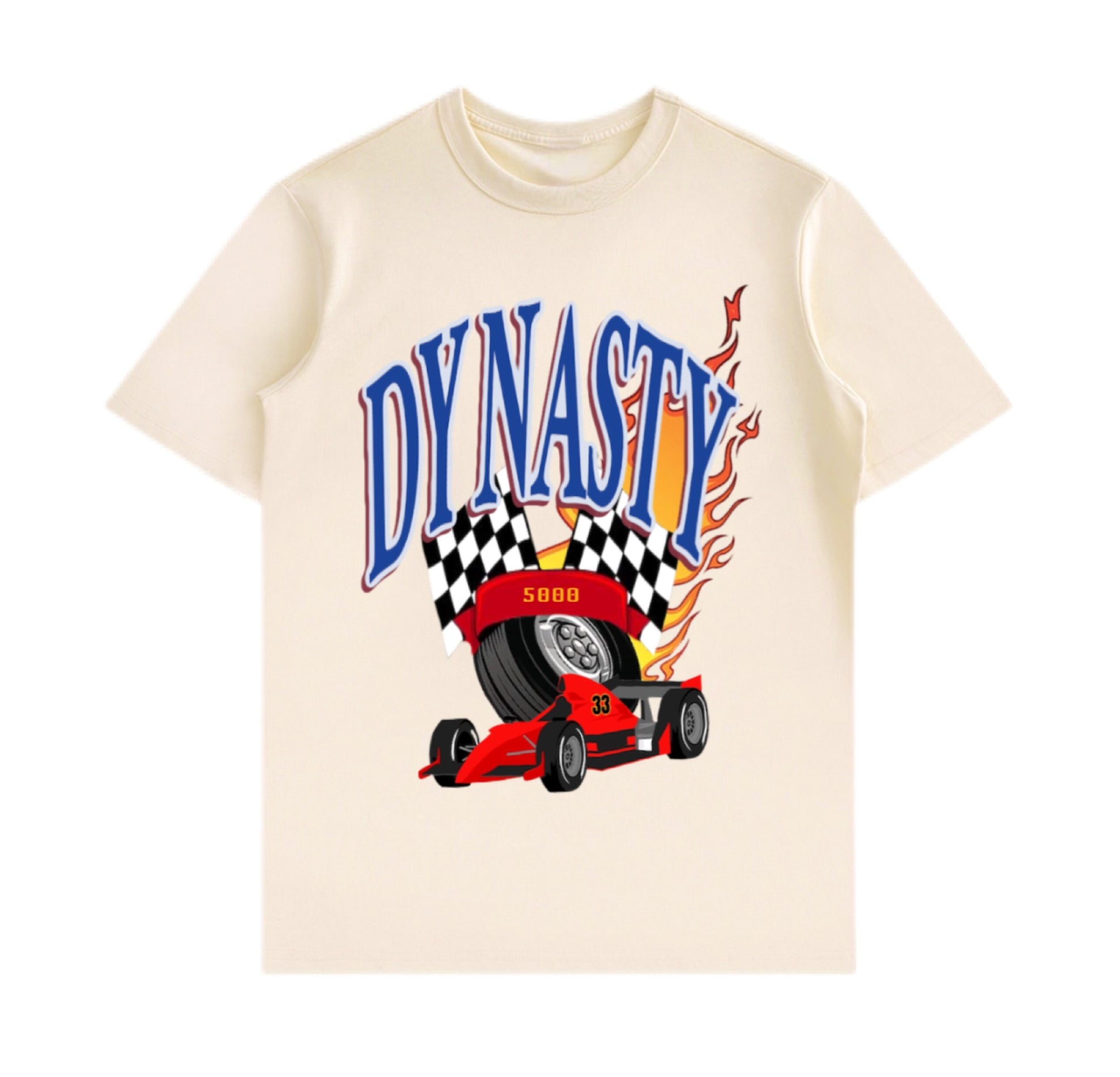 Beige DYNASTY 5000 T shirt inspired by Classic racing derby with a Dynasty twist to it.
