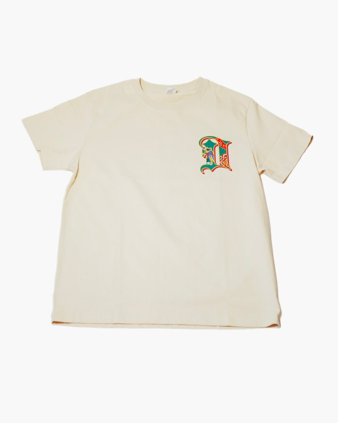EXCLUSIVE DROP** DYNASTY Cream Badge Edition Series Tee with Green Logo on front and back of shirt.