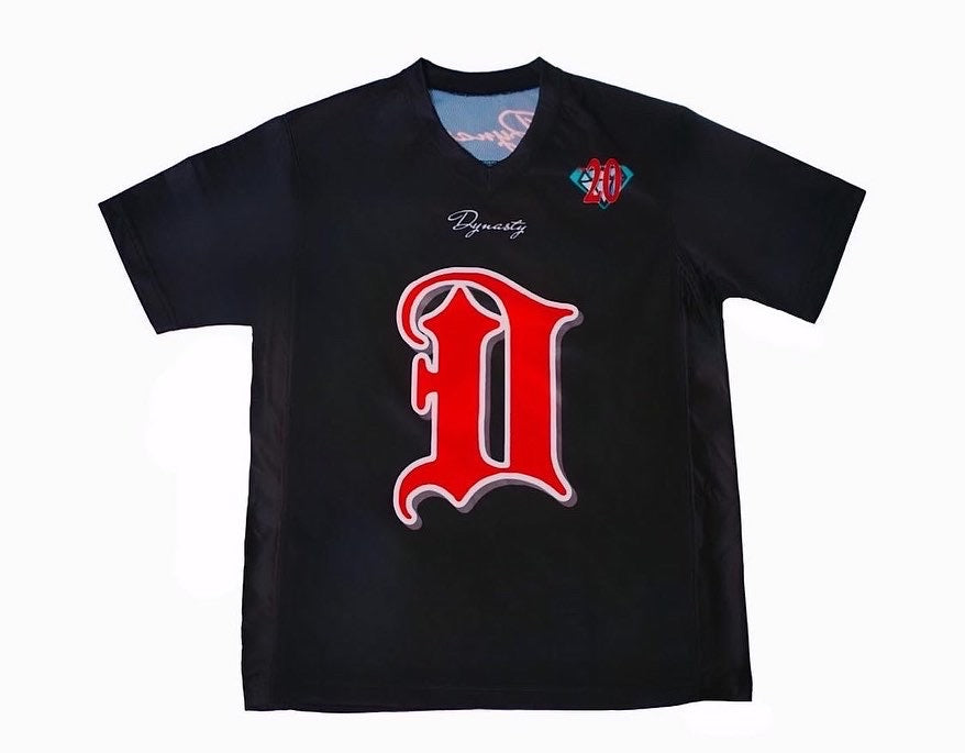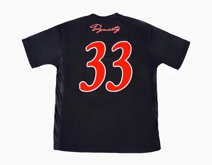 DYNASTY Black Football Jersey with Red Logo . All Items are Unisex