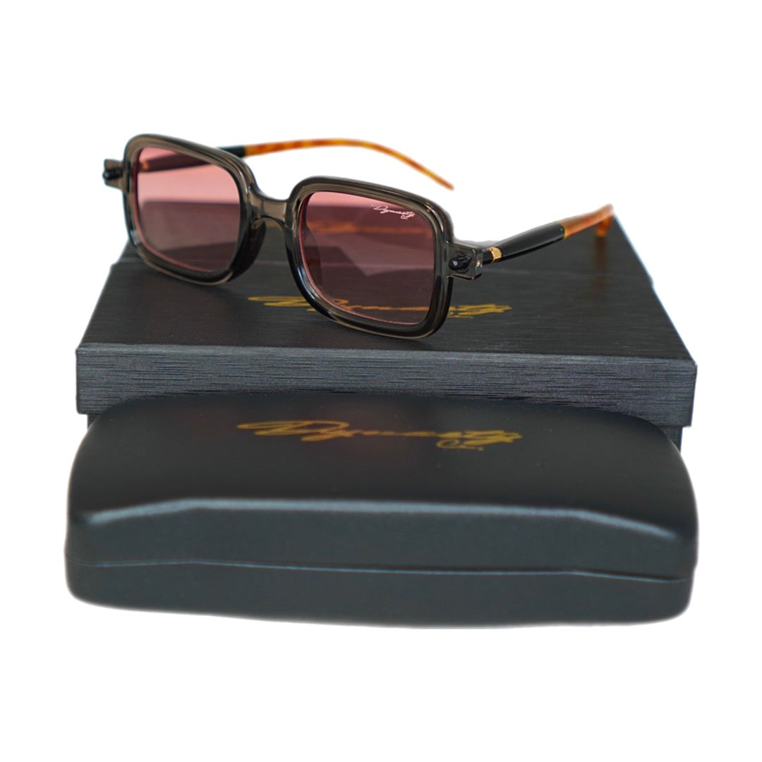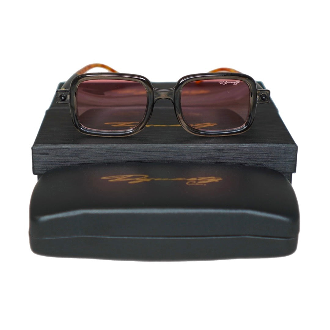 Dynasty Grey & Salmon Aviators Shades with Pink lens with Grey frames and Black and Brown leg frames with laser Dynasty logo on the lens