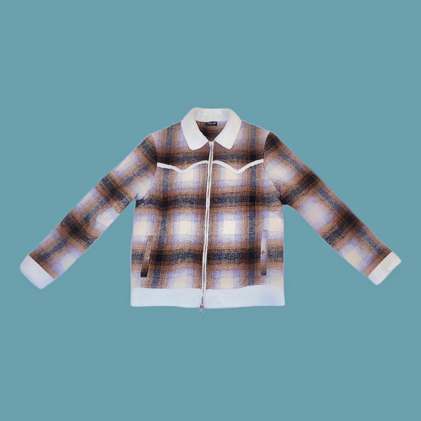DYNASTY style sterling jacket with inside lining. Navy Blue Light Blue & Orange pattern with side pockets. All of Our Items are (Unisex Item)