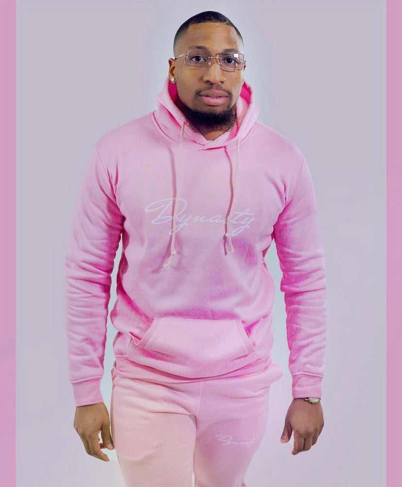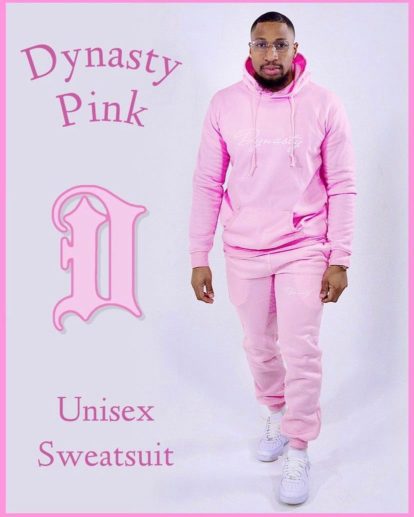 DYNASTY Pink Sweatsuit Unisex fit top and bottom with Dynasty logo middle of the hoodie and bottom of pants
