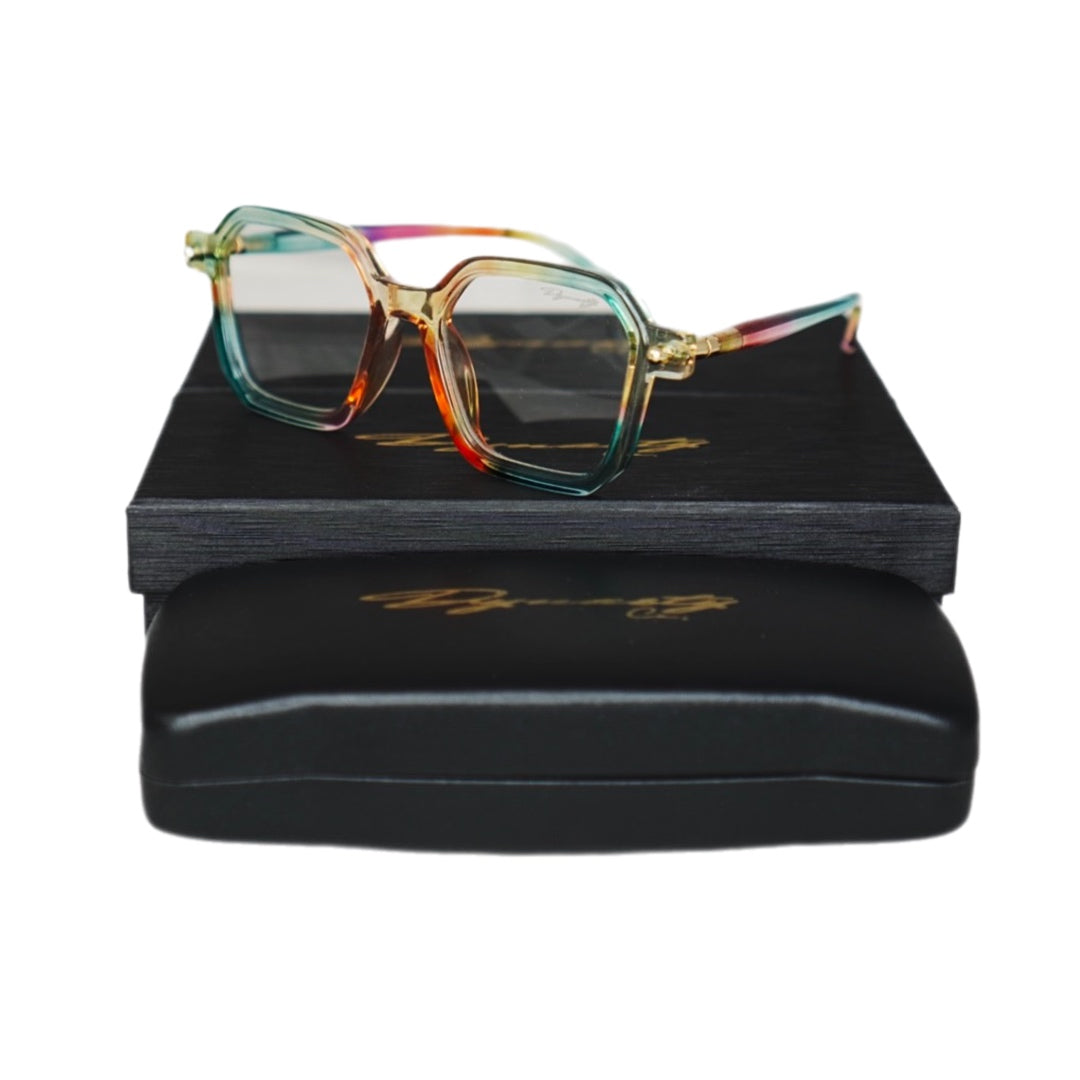 Dynasty Rainbow Aviators Shades with clear lens with Rainbow frames with laser Dynasty logo on the lens
