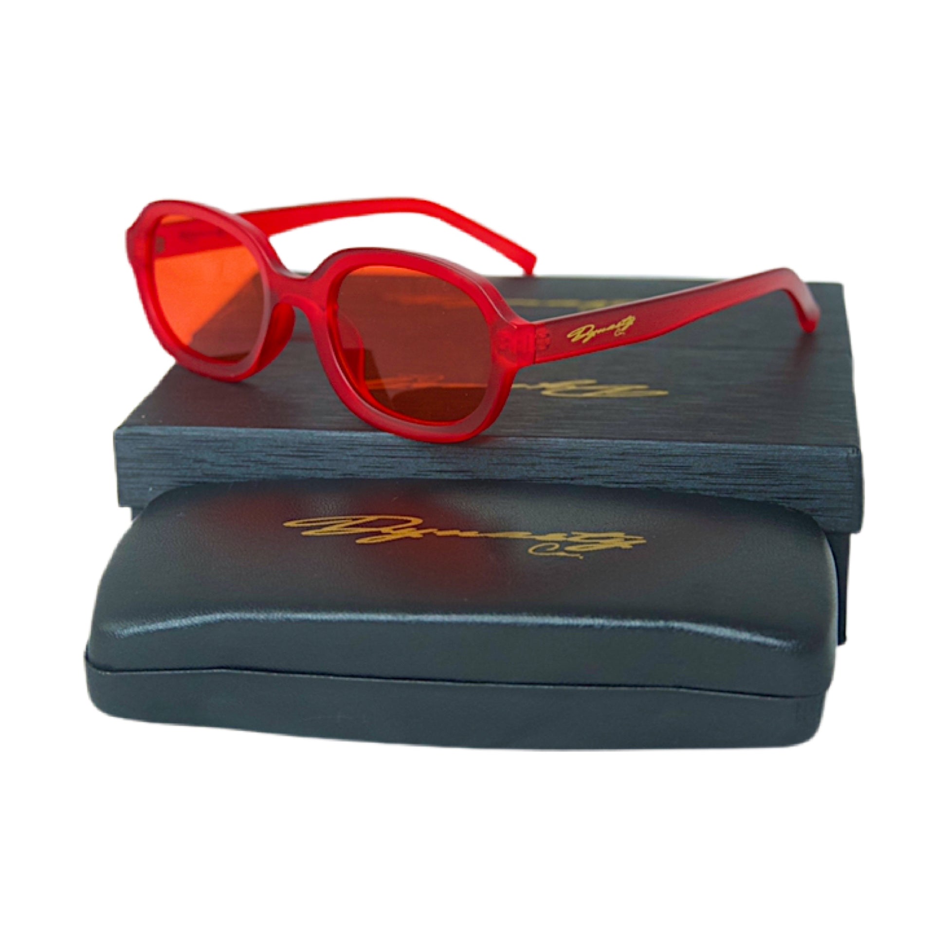 Dynasty Red lens glasses with Red frames great quality with the Dynasty logo on the side of the frames