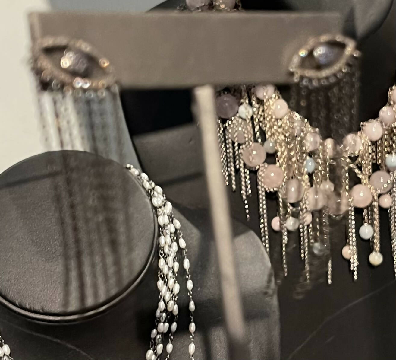 Earrings 701 -diamond evil eye with ss fringe chain