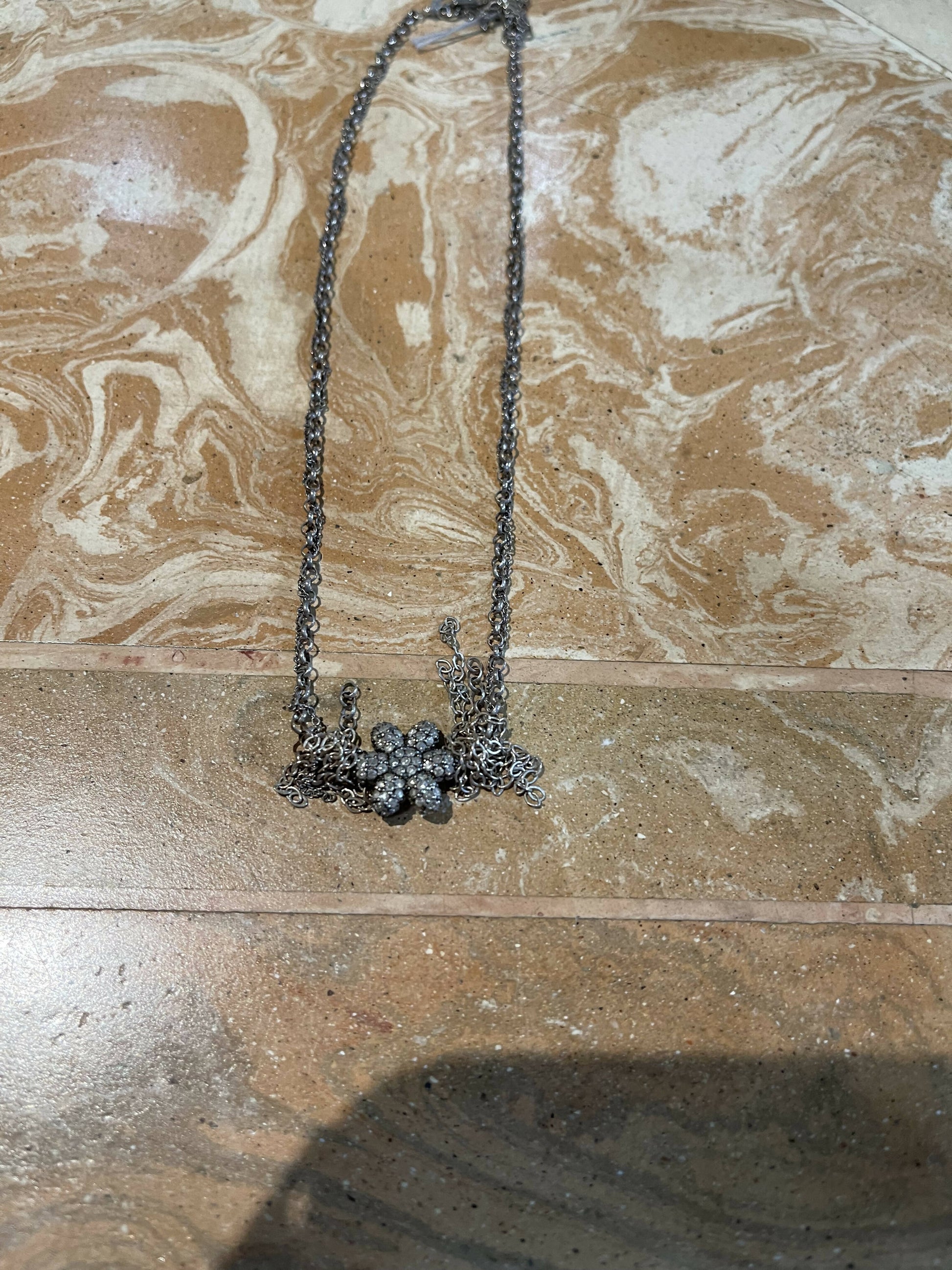 Braided sterling silver chain with diamond flower doubles sided. With fringe on the sides