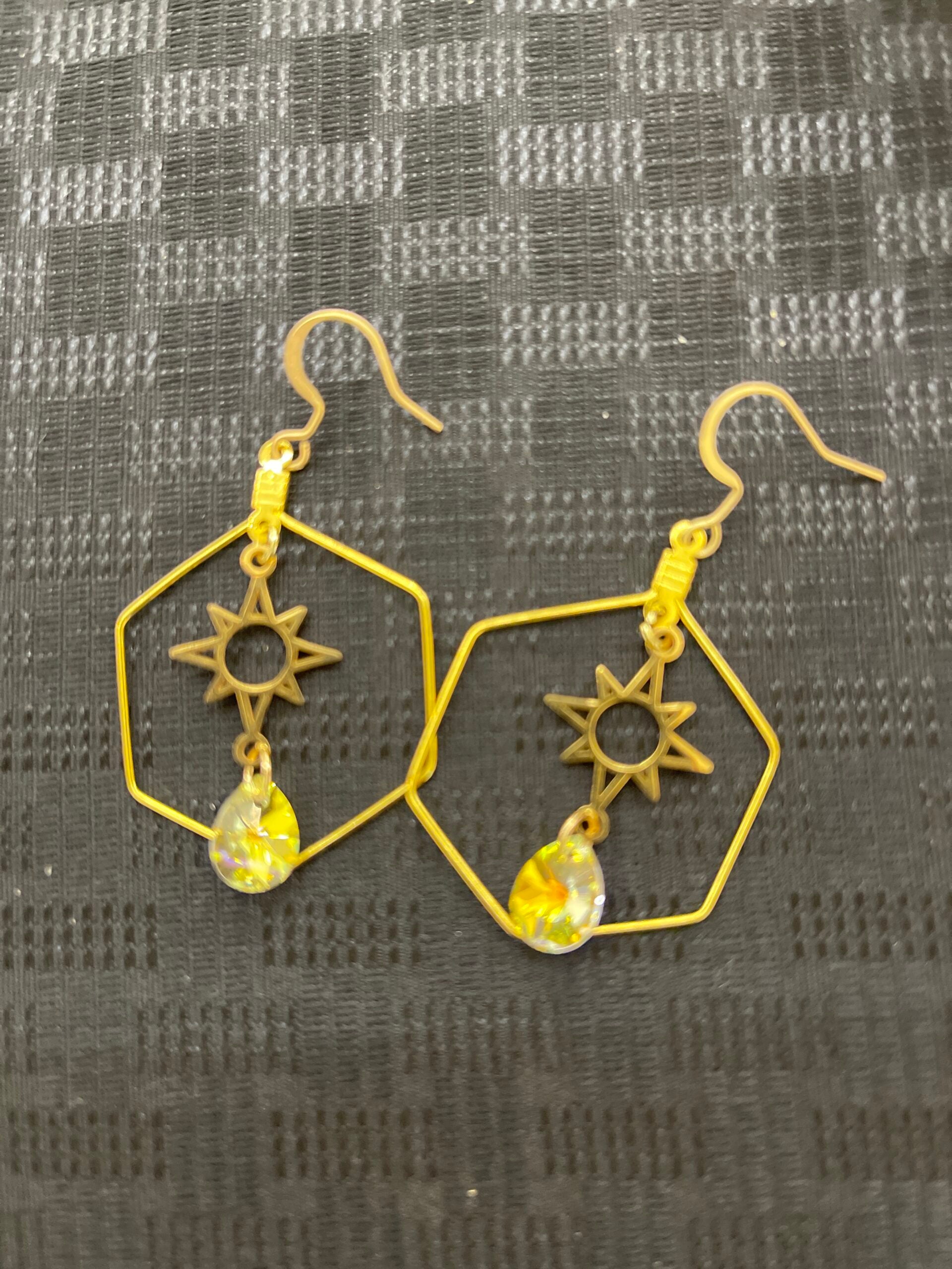 Geometric Sun and Swarovski Crystal Earrings
