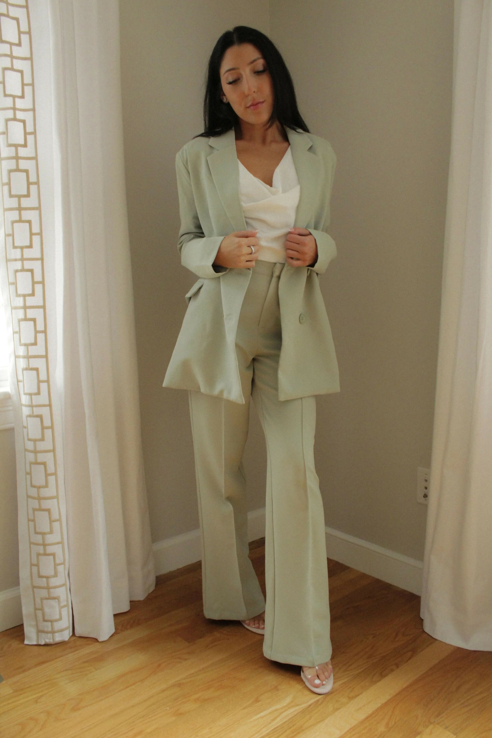 These wide leg pants are a must-have for your wardrobe. Featuring a stretched woven material with pockets, front seam detail and a wide leg fit, these pants are a staple that can upgrade any closet. Match it with our oversized Hailey Blazer for an ultra-sophisticated look. Blazer sold separately.