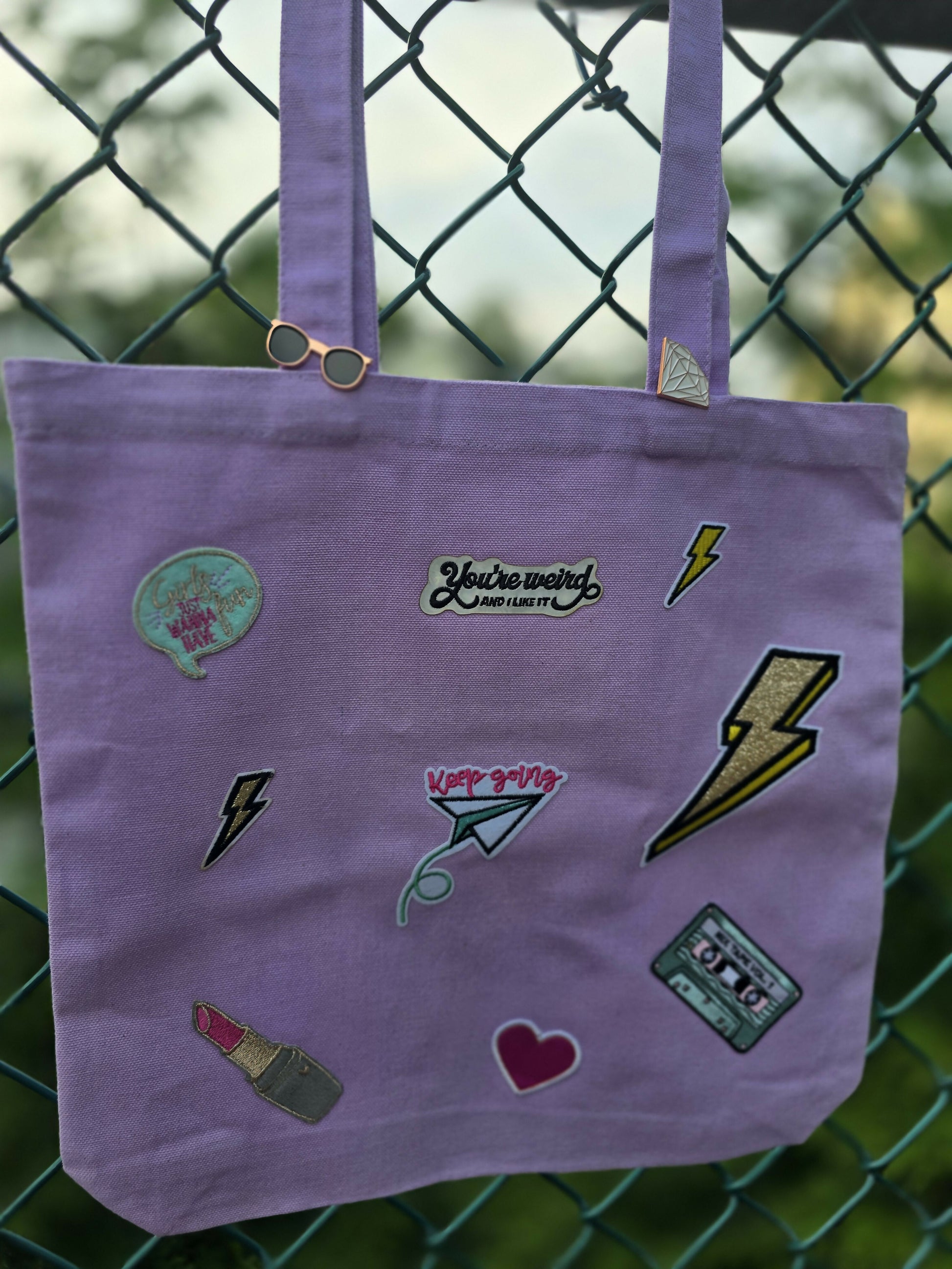 A little weird, a lot of fun, and packed with personality—the Keep Going Tote is your everyday reminder to embrace what makes you different and keep pushing forward. With its playful mix of patches (lightning bolts, lipstick, cassette tapes, and the unapologetic “You’re weird and I like it”), this tote is as unique as your vibe.