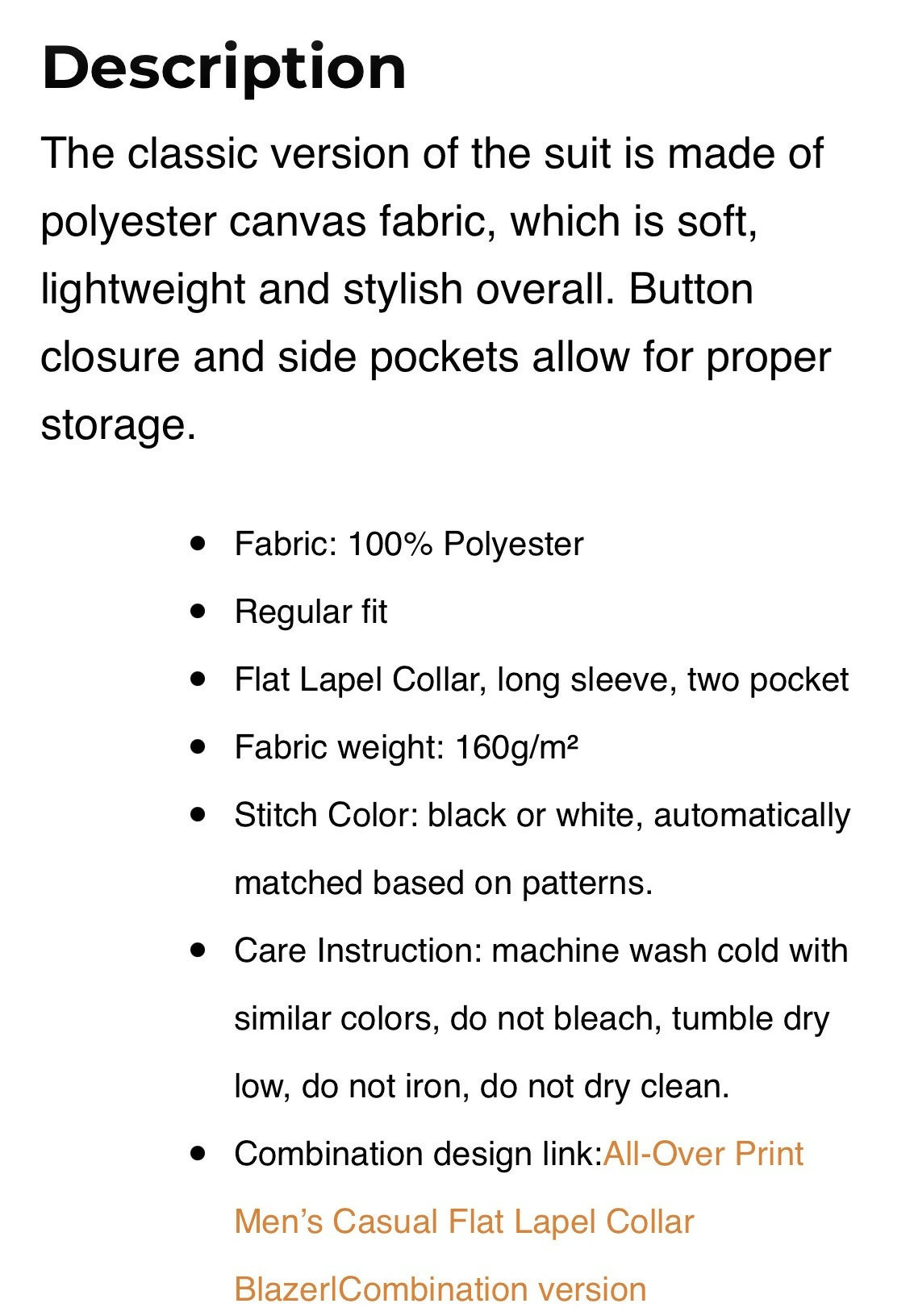 Men’s Casual Flat Lapel Blazer Sizes XS-5XL